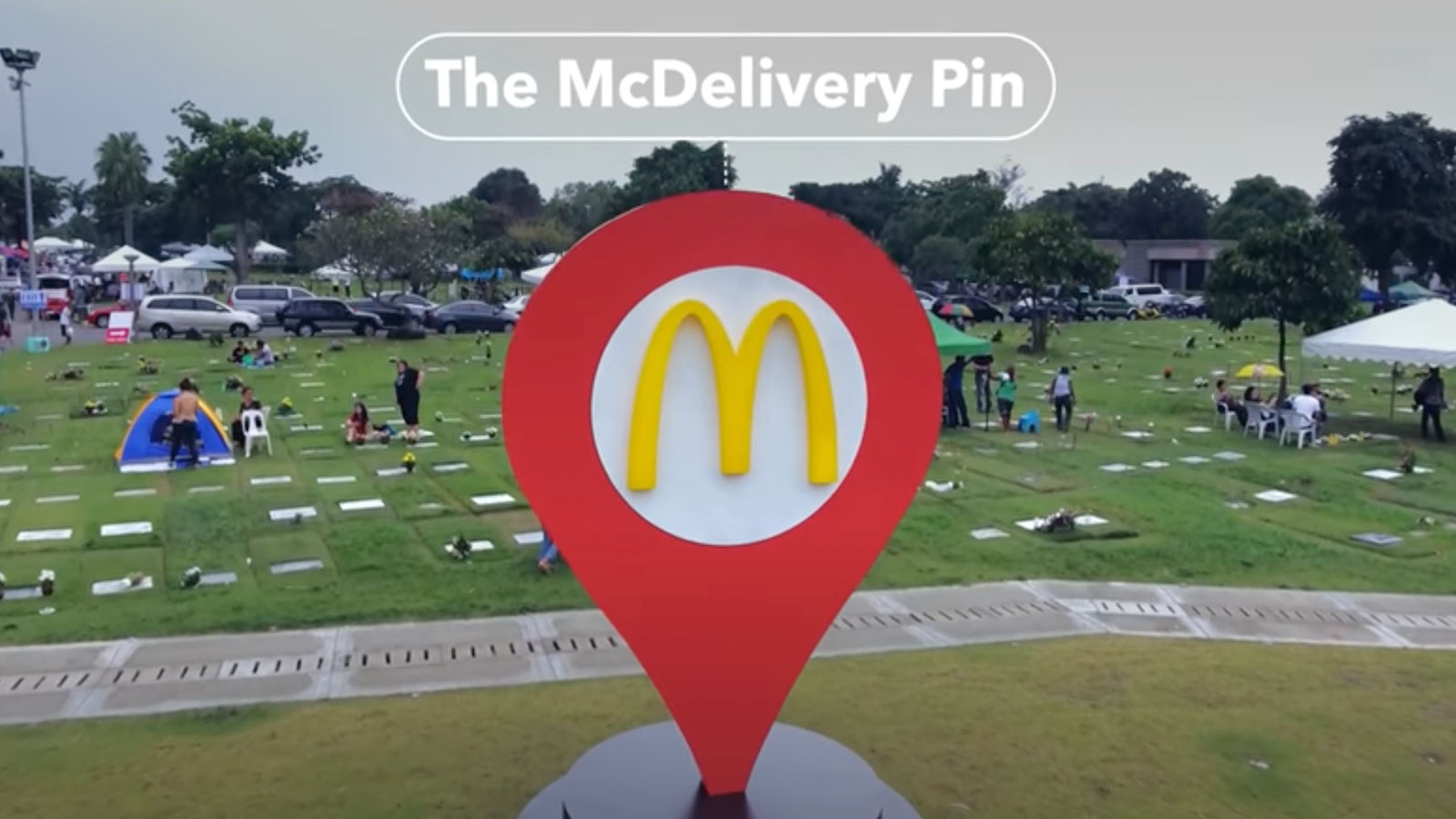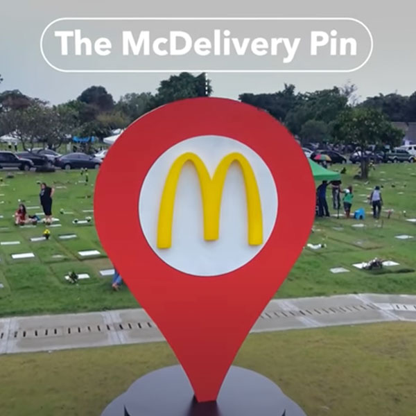 To help quell the hunger pangs of families and cemetery-goers during Undas, we put up The McDelivery Pin, a 14-foot tall landmark. Integrated into the McDonald’s app and mobile site, the McDelivery Pin appears on the app interface as a recommended pick-up point when the customer checks out his order for delivery to the memorial park. The giant McDelivery Pin is searchable on online maps Google and Waze, so rider and customer can easily find each other in the wide, crowded area. It also lights up at night for easy visibility.