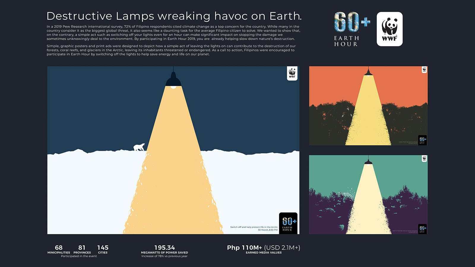 The campaign helped push awareness and engagement during Earth Hour 2019—where 68 municipalities, 81 provinces, 145 cities in the Philippines participated. Helping save a total of 195.34 megawatts of power.